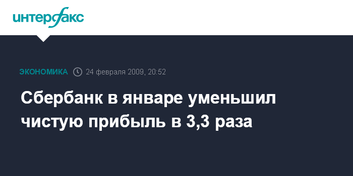 Сбербанк в январе уменьшил чистую прибыль в 3,3 раза