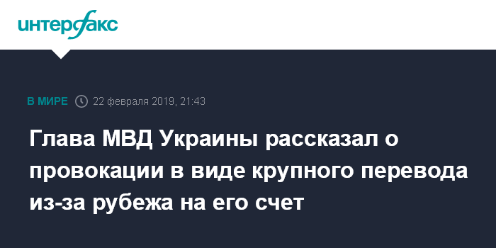 Глава МВД Украины рассказал о провокации в виде крупного перевода из-за рубежа на его счет