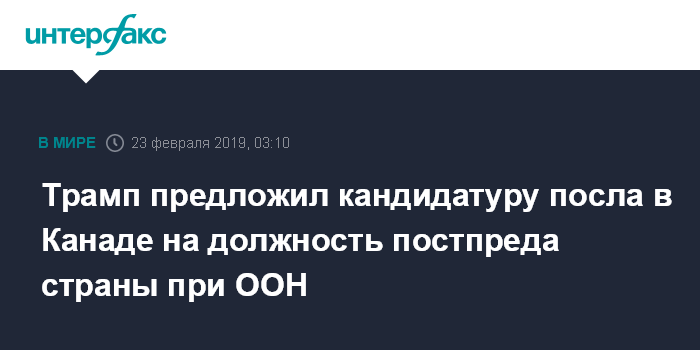 Трамп предложил кандидатуру посла в Канаде на должность постпреда страны при ООН