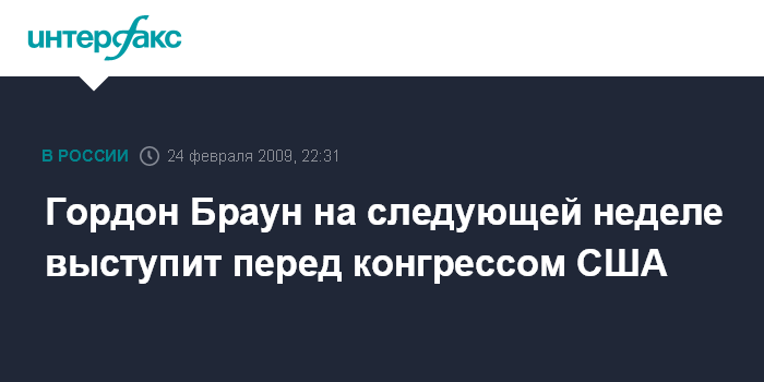 Гордон Браун на следующей неделе выступит перед конгрессом США