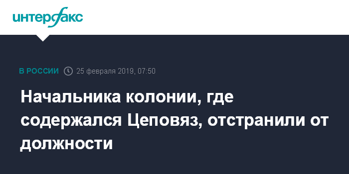 Москва. 25 февраля. INTERFAX.RU -Начальник колонии в Амурской области, где содержался член "банды Цапка" Вячеслав Цеповяз, отстранен от должности, сообщил по итогам проверки член комиссии Общественной палаты (ОП) РФ Дмитрий Носов.