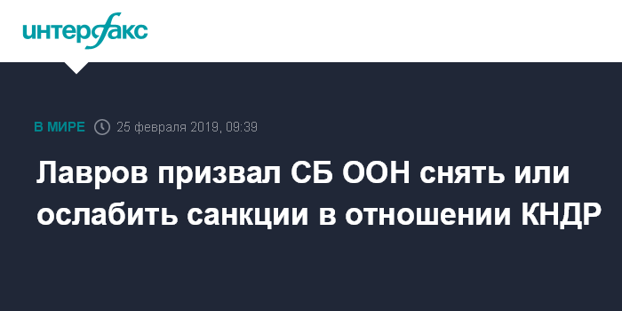Лавров призвал СБ ООН снять или ослабить санкции в отношении КНДР
