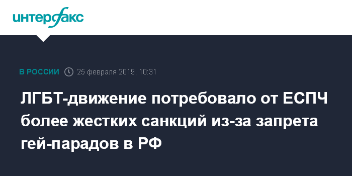"Суд, в частности, пришел к выводу, что решение властей РФ об отказе в проведении публичных мероприятий ЛГБТ-сообщества не может быть оправдано опасениями за общественный порядок", - решил суд.