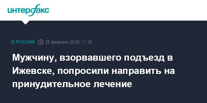 Мужчину, взорвавшего подъезд в Ижевске, попросили направить на принудительное лечение