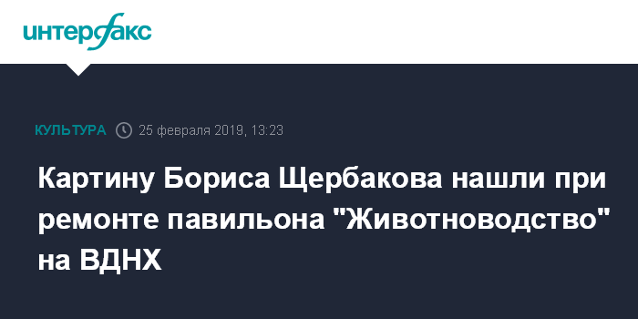 Москва. 25 февраля. INTERFAX.RU - При подготовке к ремонту павильона №42 "Животноводство" на ВДНХ была найдена картина народного художника СССР Бориса Щербакова, сообщил мэр Москвы Сергей Собянин.