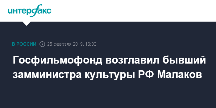 Москва. 25 февраля. INTERFAX.RU - Бывший заместитель министра культуры Николай Малаков назначен директором Госфильмофонда.