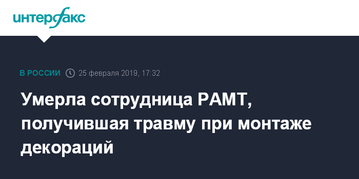Умерла сотрудница РАМТ, получившая травму при монтаже декораций