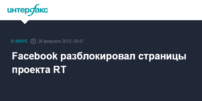 В Facebook позже сообщили, что разблокируют аккаунты проекта телеканала RT после того, как их владельцы сообщат информацию об аффилированных с ними компаниях и укажут страны, из которых страницы управляются.