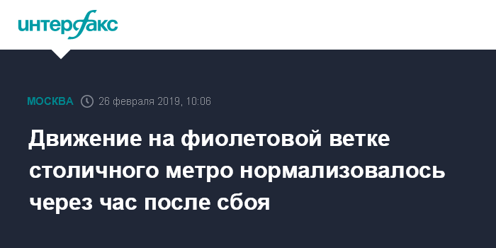 Собеседник агентства напомнил, что ранее поезда на фиолетовой ветке ходили с увеличенными интервалами по техническим причинам.
