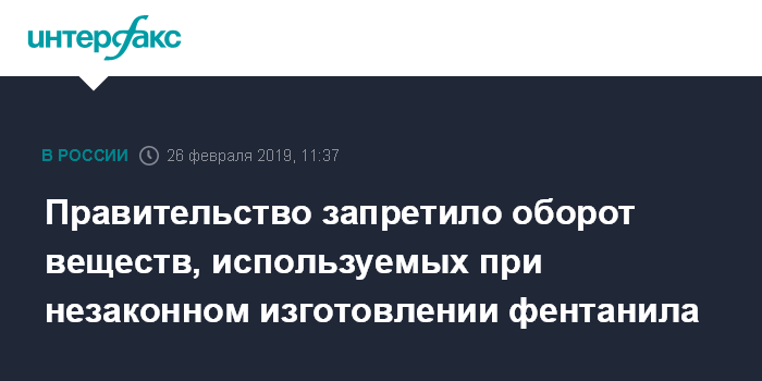 Москва. 26 февраля. INTERFAX.RU - Правительство РФ запретило оборот ряда прекурсоров наркотических средств, которые ранее не входили в список запрещенных и могут использоваться при незаконном изготовлении фентанила, исключение сделаны для их использования в научных и учебных целях.