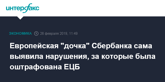 Европейская "дочка" Сбербанка сама выявила нарушения, за которые была оштрафована ЕЦБ
