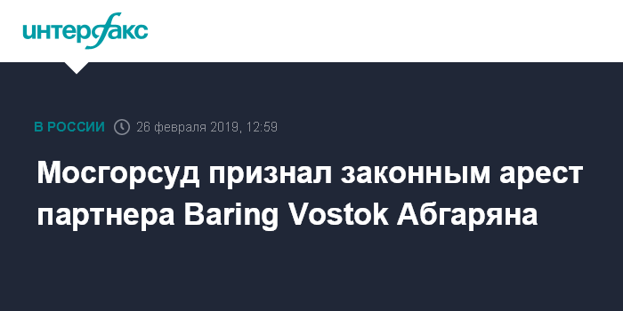Москва. 26 февраля. INTERFAX.RU - Мосгорсуд оставил без изменений решение о заключении под стражу партнера Baring Vostok Вагана Абгаряна, арестованного по тому же делу, что и основатель фонда Майкл Калви, передает корреспондент "Интерфакса".