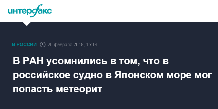 В РАН усомнились в том, что в российское судно в Японском море мог попасть метеорит