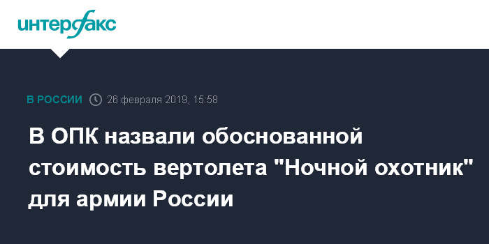 В ОПК назвали обоснованной стоимость вертолета "Ночной охотник" для армии России
