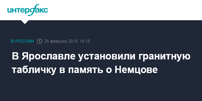 Москва. 26 февраля. INTERFAX.RU - В Ярославле на доме, в котором жил Борис Немцов, разместили гранитную табличку, сообщила во вторник в своем твиттере партия ПАРНАС.