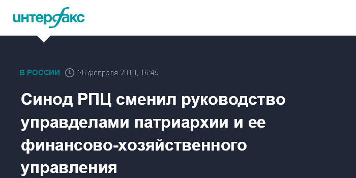 Синод РПЦ сменил руководство управделами патриархии и ее финансово-хозяйственного управления