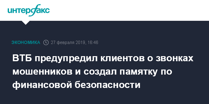 ВТБ предупредил клиентов о звонках мошенников и создал памятку по финансовой безопасности
