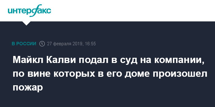 Майкл Калви подал в суд на компании, по вине которых в его доме произошел пожар