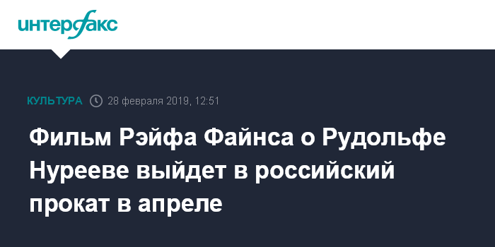 Москва. 28 февраля. INTERFAX.RU - Фильм Рэйфа Файнса "Нуреев. Белый ворон", рассказывающий о жизни танцовщика с детских лет до "прыжка к свободе", появится в российском прокате в апреле 2019 года.