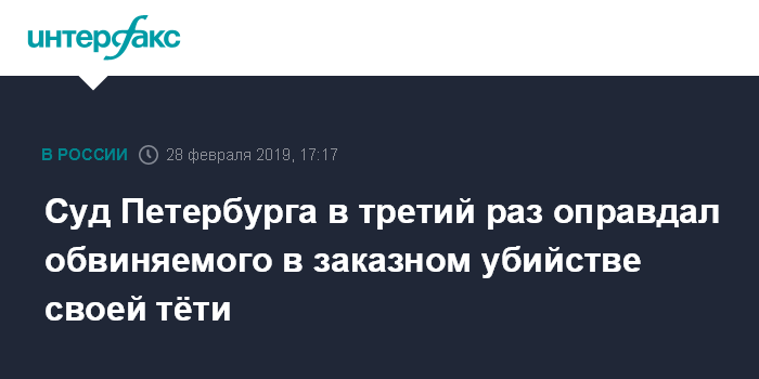 Суд Петербурга в третий раз оправдал обвиняемого в заказном убийстве своей тёти