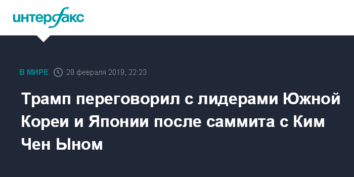 Трамп переговорил с лидерами Южной Кореи и Японии после саммита с Ким Чен Ыном