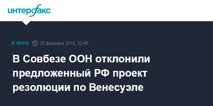 Москва. 28 февраля. INTERFAX.RU - Совет безопасности ООН в ходе голосования не поддержал российский проект резолюции по Венесуэле.