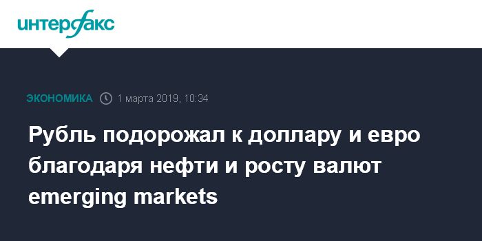 Как отмечают эксперты "Интерфакс-ЦЭА", рубль укрепляется к доллару и евро на старте торгов благодаря улучшению настроений на мировых биржах, в том числе на валютных площадках emerging markets, а также росту цен на нефть. Участники рынков позитивно реагируют на смягчение рисков, связанных с торговыми спорами США и Китая. По данным агентства Bloomberg, американские переговорщики готовят итоговый текст торгового соглашения с Китаем к саммиту лидеров двух государств, который может пройти в середине марта.