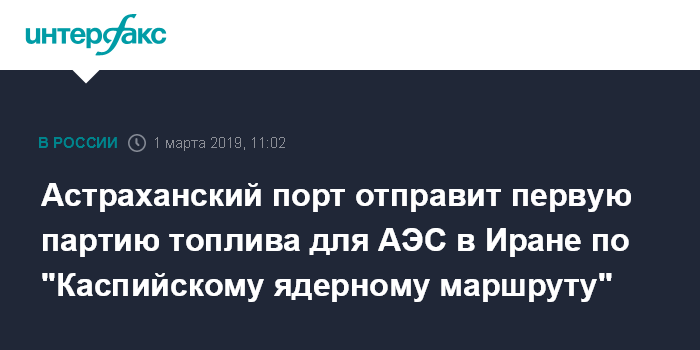 Москва. 1 марта. INTERFAX.RU - Астраханский порт Оля получил лицензию на перевалку ядерных грузов и готов отправить первую партию топлива для АЭС "Бушер" в Иране, сообщил директор АО "Морской торговый порт Оля" Александр Мельников.