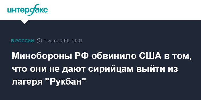 Москва. 1 марта. INTERFAX.RU - Американская сторона жестко противодействует стремлению жителей лагеря "Рукбан" вернуться к местам своего проживания в Сирии, заявил начальник Национального центра управления обороной РФ генерал-полковник Михаил Мизинцев.