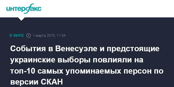 События в Венесуэле и предстоящие украинские выборы повлияли на топ-10 самых упоминаемых персон по версии СКАН