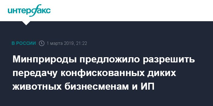 Москва. 1 марта. INTERFAX.RU - Минприроды предлагает передавать конфискованных диких животных, которых нельзя выпустить на волю, государственным учреждениям или коммерческим фирмам.