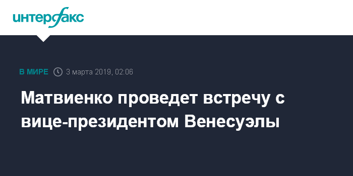 "3 марта председатель Совета Федерации Валентина Матвиенко проведет встречу с исполнительным вице-президентом Боливарианской Республики Венесуэла Делси Родригес", - говорится в сообщении пресс-службы.