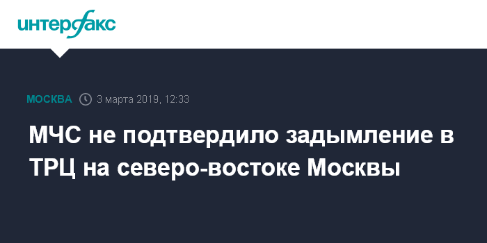 МЧС не подтвердило задымление в ТРЦ на северо-востоке Москвы