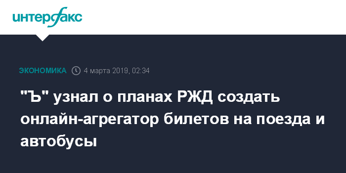 "Ъ" узнал о планах РЖД создать онлайн-агрегатор билетов на поезда и автобусы