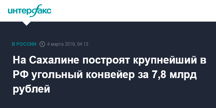 На Сахалине построят крупнейший в РФ угольный конвейер за 7,8 млрд рублей
