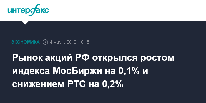 Рынок акций РФ открылся ростом индекса МосБиржи на 0,1% и снижением РТС на 0,2%