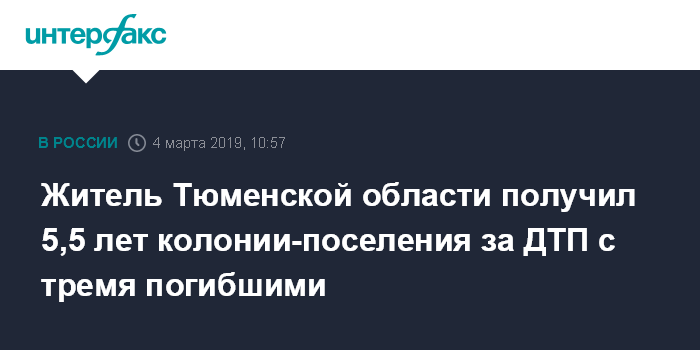 Москва. 4 марта. INTERFAX.RU - Половинский районный суд Курганской области приговорил жителя Тюменской области к 5,5 годам колонии-поселения по делу о ДТП с тремя жертвами, сообщает пресс-служба прокуратуры региона в понедельник.
