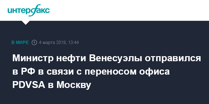 1 марта стало известно, что президент Венесуэлы Николас Мадуро распорядился перевести офис нефтяной компании PDVSA из Лиссабона в Москву. Сообщалось, что перевод европейского офиса PDVSA в Россию необходим в соответствии с планами расширения технического сотрудничества в области нефтедобычи с "Роснефтью" и "Газпромом" .