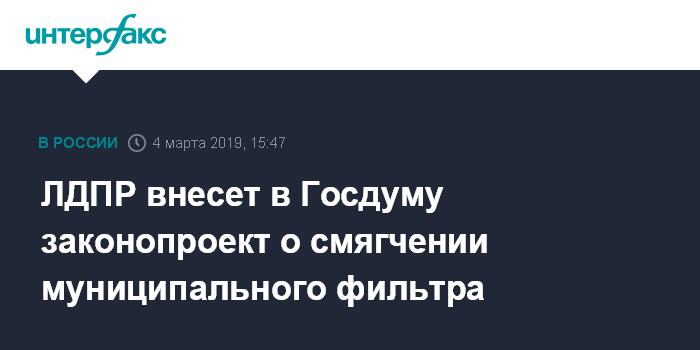 ЛДПР внесет в Госдуму законопроект о смягчении муниципального фильтра