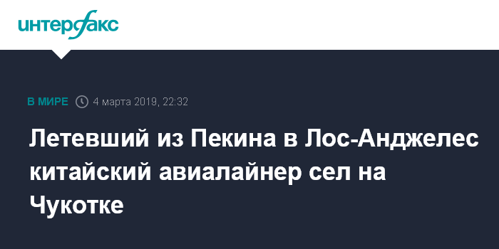 Летевший из Пекина в Лос-Анджелес китайский авиалайнер сел на Чукотке