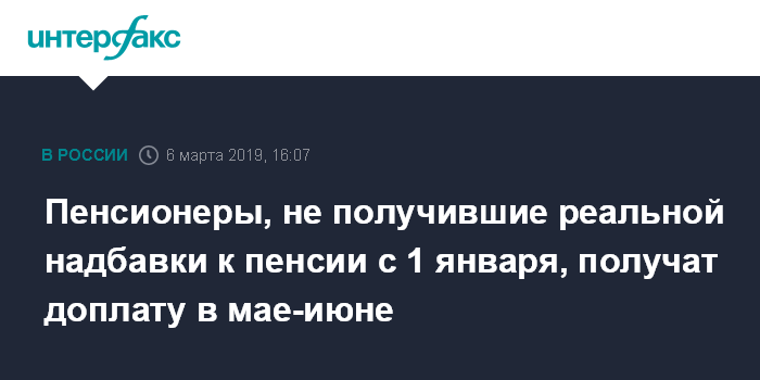 Пенсионеры, не получившие реальной надбавки к пенсии с 1 января, получат доплату в мае-июне