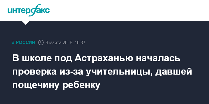 Москва. 6 марта. INTERFAX.RU - Служебная проверка началась в школе в городе Камызяк (Астраханская область) после того, как учительница обществознания на уроке ударила по лицу мальчика, сообщили агентству "Интерфакс" в медиа-центре Минобразования региона в среду.