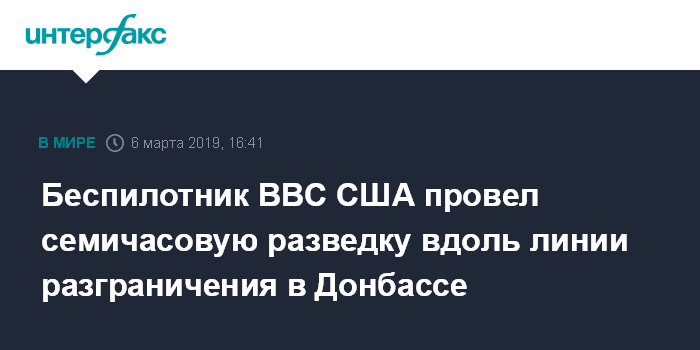 Как сообщалось, аналогичный полет американский дальний беспилотник совершил 1 марта. Он также около семи часов летал вдоль линии разграничения в Донбассе, а затем еще пять часов курсировал у черноморского побережья России.