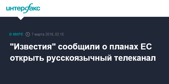 "Евросоюз открывает собственный русскоязычный телеканал, съемочные группы которого будут представлены во всех российских регионах. Первое время он будет вещать в интернете, основной задачей нового СМИ станет донесение западной интерпретации происходящих в мире событий до русскоязычного населения", - говорится в публикации.