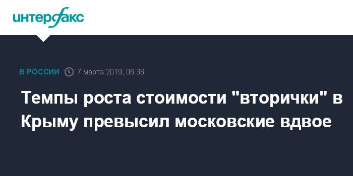Москва. 7 марта. INTERFAX.RU - За последний год темпы роста стоимости вторичной недвижимости в Крыму превысили московские вдвое, сообщает в четверг газета "Коммерсант".