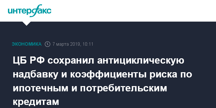 ЦБ РФ сохранил антициклическую надбавку и коэффициенты риска по ипотечным и потребительским кредитам