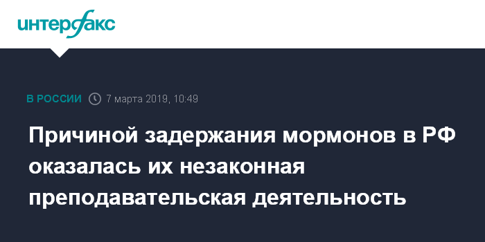 Причиной задержания мормонов в РФ оказалась их незаконная преподавательская деятельность