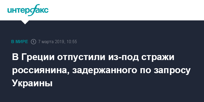 В Греции отпустили из-под стражи россиянина, задержанного по запросу Украины