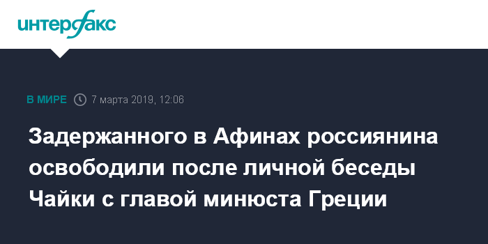 Задержанного в Афинах россиянина освободили после личной беседы Чайки с главой минюста Греции