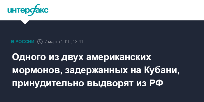 Одного из двух американских мормонов, задержанных на Кубани, принудительно выдворят из РФ